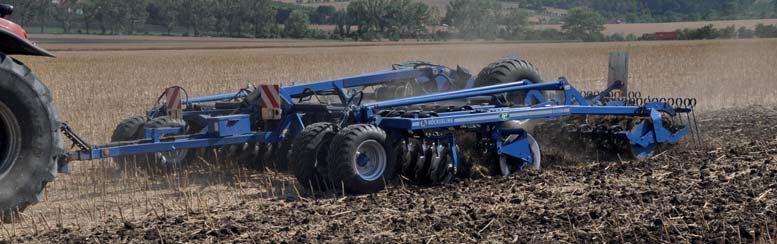 V Blatnici se snaží maximálně obohatit půdu organickou hmotou. Využívají produkty živočišné výroby, veškerou slámu drtí a nechávají na poli a půdu obohatí i hmota meziplodin, které podnik pěstuje na 250 ha. Půdu zpracovávají v Blatnici kombinovaně. „Pod ozimy zpracováváme půdu bezorebně. Je to dáno místními půdami, nedostatkem vláhy i času. Ořeme ale pod jařiny, pokud to půdy dovolí, tedy pod ječmen a kukuřici. Pod řepku, sóju a hrách půdu podrýváme dlátovým pluhem, a když stíháme, tak podrýváme i pod pšenice. Podrývání upřednostňujeme proto, že nám podrývák nevytahuje kameny na povrch pole,“ popisuje zdejší systém agronom. Aby však mohla nastoupit výše zmíněná technika, musí být pole nejdříve kvalitně podmítnuto. Velmi důležitou roli při zpracování půdy po sklizni a také při přípravě před setím hrají podmítače. Ty jsou v Blatnici talířové. „Léta jsme pro podmítky využívali tři talířové podmítače, jeden těžký s velkými talíři, druhý naopak s malými. Třetí, s klasickou koncepcí, dosloužil, a tak jsme za něj začali hledat náhradu,“ vzpomíná Ing. Kalabus.