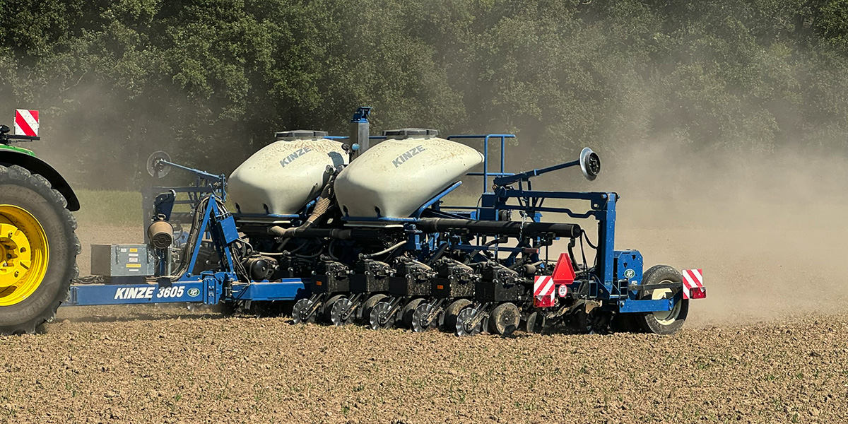 V Zemědělském družstvu v Unčovicích používají technologii Kinze pro úzkořádkové setí plodin jako je kukuřice, sója a řepka. Přesný secí stroj Kinze 3605 12R ASD Interplant (pracovní záběr 9 m) v podniku letos zasel více jak 1 200 ha. Část kukuřic na rozteč řádků 75 cm, část na 37,5 cm, ovšem sóju i řepku pouze na 37,5 cm.