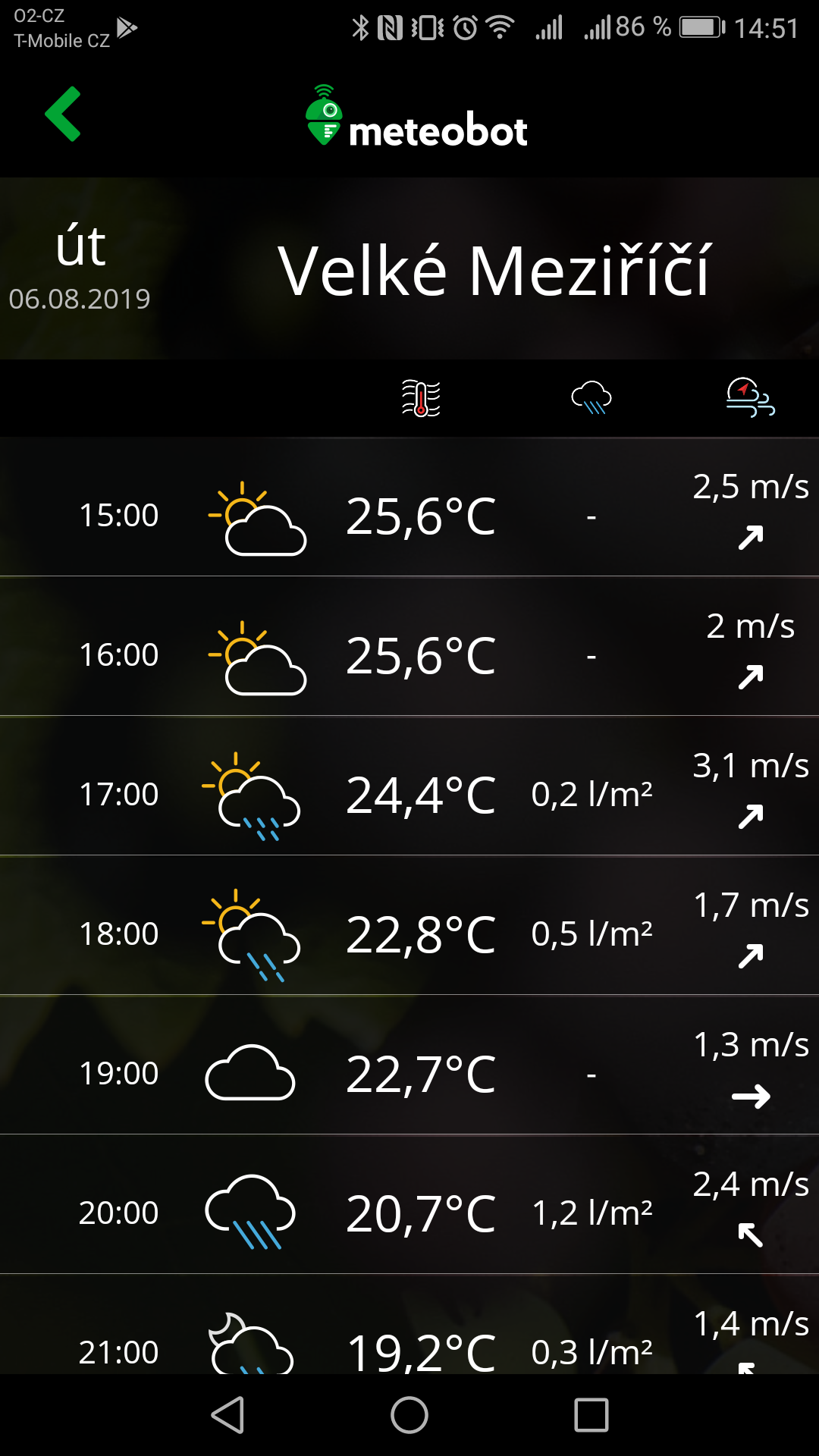 - rychlost větru, volitelně lze i směr větru,