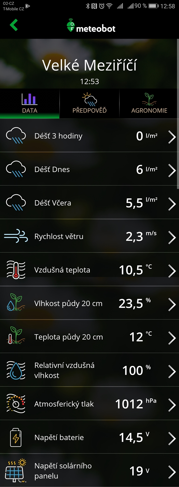 Meteobot Pro je profesionální meteostanice, která Vám poskytuje detailní meteorologické informace důležité pro každého zemědělce. Díky solárnímu panelu a záložní baterii je její provoz naprosto automatický a bezúdržbový.